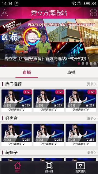 全國(guó)千家線下實(shí)體中國(guó)好聲音海選站,利用領(lǐng)先的虛擬現(xiàn)實(shí)技術(shù),讓你身臨其境的站在中國(guó)好聲音盲選舞臺(tái),邁出追逐音樂(lè)夢(mèng)想的第一步!