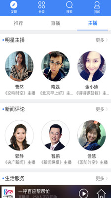 【專業(yè)的內(nèi)容推薦】小編每日精選電臺(tái)精彩欄目!特色主播!隨時(shí)都有新內(nèi)容,每天都有大發(fā)現(xiàn)?;馃岬碾娕_(tái)節(jié)目,人氣的電臺(tái)主播,小編幫您一網(wǎng)打盡!【真實(shí)的互動(dòng)直播】中央臺(tái)節(jié)目主播與您實(shí)時(shí)互動(dòng)!彈幕、社區(qū)、打賞、互動(dòng)游戲!您再也不用自?shī)首詷?lè),您的聲音、您的看法、您想表達(dá)的一切,都可以直接讓節(jié)目主播看到哦!廣播新升級(jí)不光能聽,還能玩!