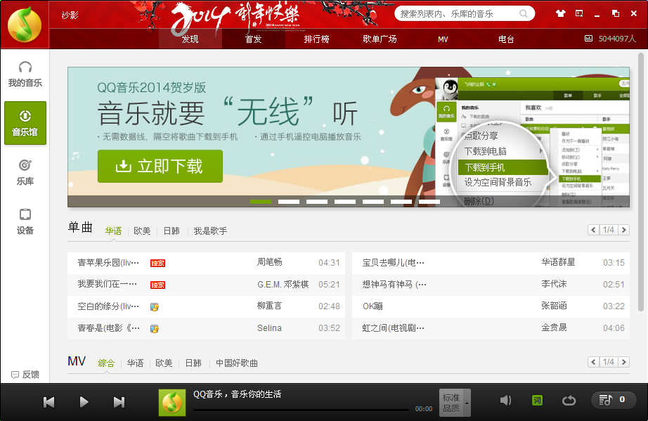 您的位置:起點軟件下載電腦軟件系統(tǒng)軟件QQ音樂2016 V12.53(3740) 官方正式版