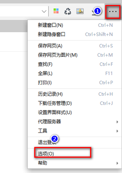 1.首選我們在360極速瀏覽器中點擊右上角的【。。?!?,在彈出的菜單中,點擊【選項(O)】;