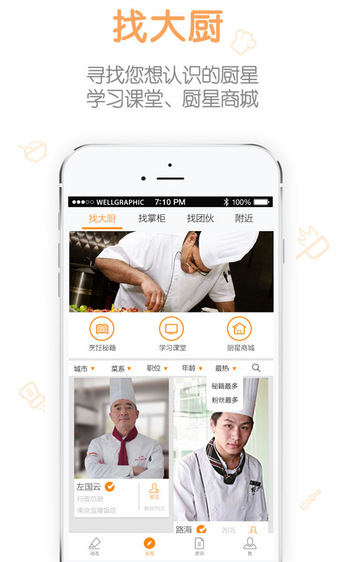 動態(tài):可以發(fā)布您的菜品制作心得,美味推薦,工作感悟等。發(fā)現(xiàn):廚星高灶主要頻道,內設版塊如下: