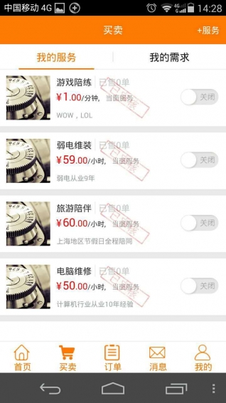 買賣時間,是一款提供個人或團體服務買賣的平臺。用戶注冊成功后,即可在平臺上購買附近用戶所出售的技能服務。分類齊全,涵蓋:休閑娛樂、家政服務、安裝維修、商務服務、健康咨詢、運動教練、教育、汽車服務、婚慶策劃、設(shè)計等12大類以上。每個大類下面可隨時添加不同的服務名稱和內(nèi)容。目前設(shè)計有350多項服務。系統(tǒng)通過地理定位功能,實時更新用戶的附近服務,讓服務需求者方便快捷的搜索附近服務。