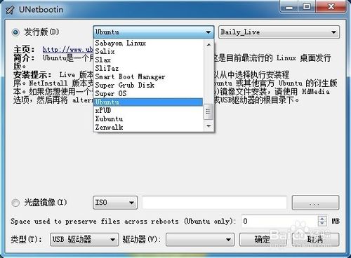 2.如果你沒有Linux的iso鏡像文件,UNetbootin可以幫您下載各個(gè)發(fā)行版的iso 文件