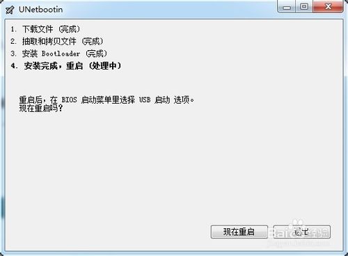 軟件提示要求重啟系統(tǒng),進(jìn)入bios設(shè)置,然后就能用U盤引導(dǎo)系統(tǒng)了。