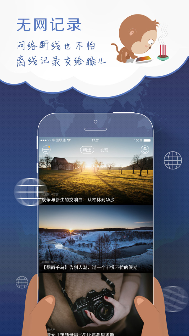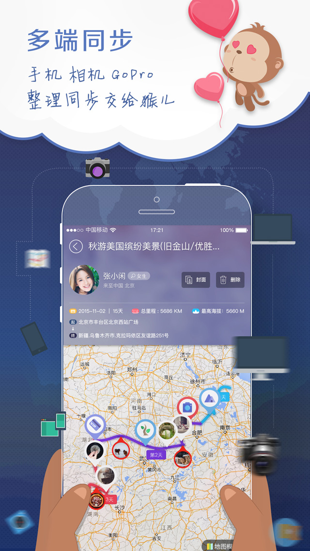 4、貼心體驗(yàn):無網(wǎng)記錄功能讓您的行程記錄永不斷線;多端同步可使所拍美圖可自動(dòng)智能匹配至出行軌跡,方便您隨時(shí)隨地編寫游記。