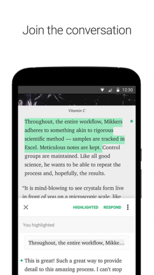 2、一個精美、動態(tài)的界面來引導(dǎo)你閱讀來自各種文風(fēng)不同的寫作者的無盡的文章內(nèi)容,既有世界聞名作者,也有剛發(fā)布處女座的首次使用者。