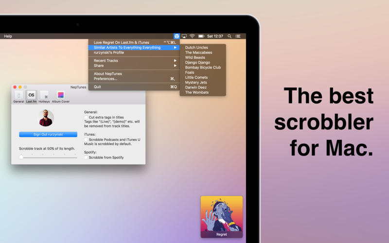NepTunes記住了15首曲目,你可以打開最近播放蘋果音樂或Spotify或Last.fm頁面為每個(gè)軌道。