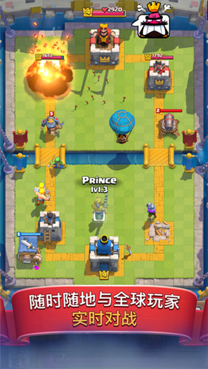 4、優(yōu)勢勿亂鋪,很多新手玩家在獲得了優(yōu)勢破了對面一座塔之后,就會很瘋狂地把自己的卡全部丟到對面半場去,然后多半會直接吃一個火球被對面反打。玩家在鋪場之前千萬要注意對面之前都有什么法術,而且小編一般推薦只要成功獲得了對面一座塔的優(yōu)勢,就立馬進行防守,這樣才能保證勝券在握。