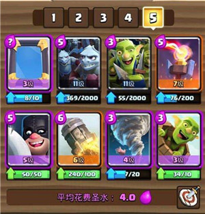 (如果玩家前期抽到了骷髏軍團可以適當?shù)靥娲幌陆鼞?zhàn)的哥布林,而如果玩家抽到的是女巫可以替代下弓箭手。)