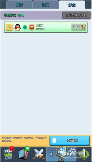 2、加完好友后,就可以在游戲中找到了。點擊下面的社交,然后右上角點擊好友,就能顯示你玩皇室戰(zhàn)爭的好友了。