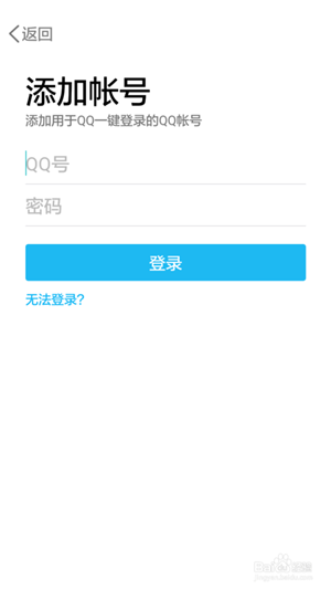 5、在添加帳號界面,輸入QQ號和密碼。