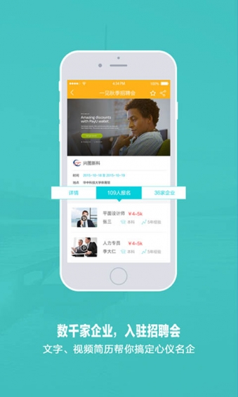 視頻秀場(chǎng)】通過視頻、圖片展示自我,是企業(yè)和求職者都需要的夢(mèng)想舞臺(tái);【智能推薦】不管你是招人還是求職,平臺(tái)都可以根據(jù)你的要求智能推薦信息;