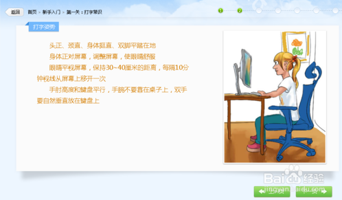 5、然后我們進入下一步,這里有個教你正確的打字姿勢,這個挺不錯的,大家看一看.