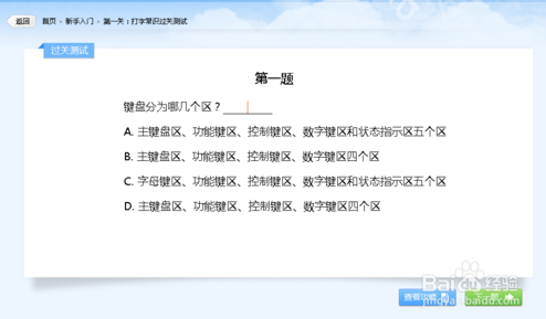 6、往后翻幾頁,都是介紹,直到彈出這個測試題,明白原來是為了讓你先認識鍵盤,大家好好地認識,不然考試過不了,小編在這里就不測試了,哈哈。