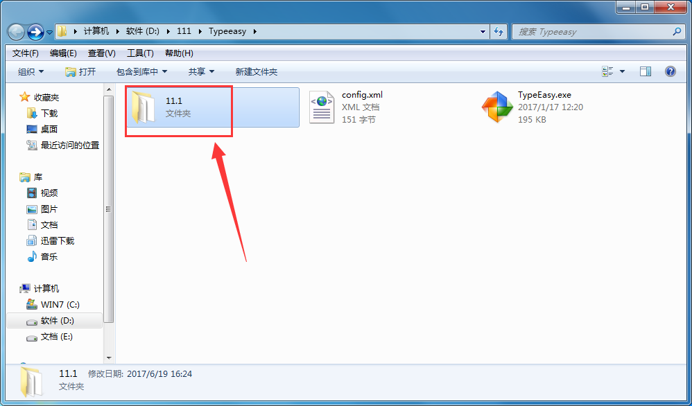2、接著在金山打字通的安裝文件夾中打開叫做“11.1”的文件夾;