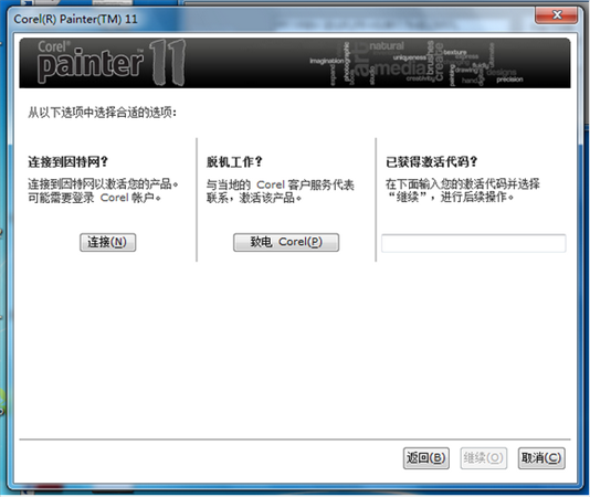 2 安裝painter 11 ,提示你是否有注冊碼,選擇第一個填入剛才生成的代碼。