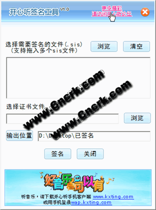 打開開心聽簽名工具,選擇需要簽名的軟件(.sis)
