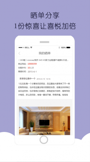 3、當(dāng)一件商品所有“等份”全部售出后計(jì)算出“幸運(yùn)號(hào)碼”,擁有“幸運(yùn)號(hào)碼”者即可獲得此商品。
