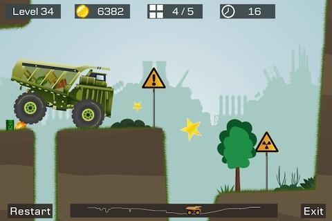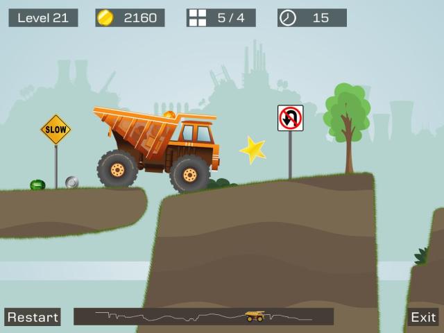 《狂野重卡 Big Truck》是一款簡單的休閑游戲。在崎嶇復雜的道路上將貨物安全運達終點。貨物不能少于關卡要求的數(shù)目,運送的越多,得分越高。你必須小心謹慎。按屏幕的左右來控制卡車的速度。旋轉設備來控制卡車的傾斜角度。車庫里面可以得到你想要的東西。準備好了嗎?出發(fā)!