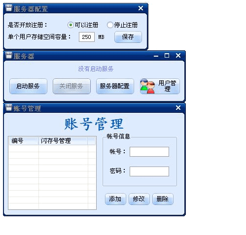 網(wǎng)吧閃存是一款小巧適用的適用于網(wǎng)吧的局域網(wǎng)存盤,本軟件可以自設(shè)置客戶是否可以注冊,單用戶存儲空間大小等。