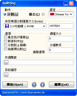 Splitting是一款來自德國的免費(fèi)文件合并 / 分割軟件,內(nèi)建多國語言,處理合并 / 分割的速度很快,且程序也小,不會(huì)占用計(jì)算機(jī)很大的空間