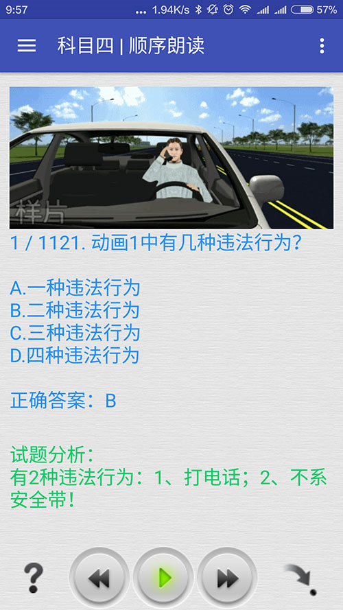 5、科目四理論考試(安全文明駕駛常識(shí),科目三路考后的考試):1121題;