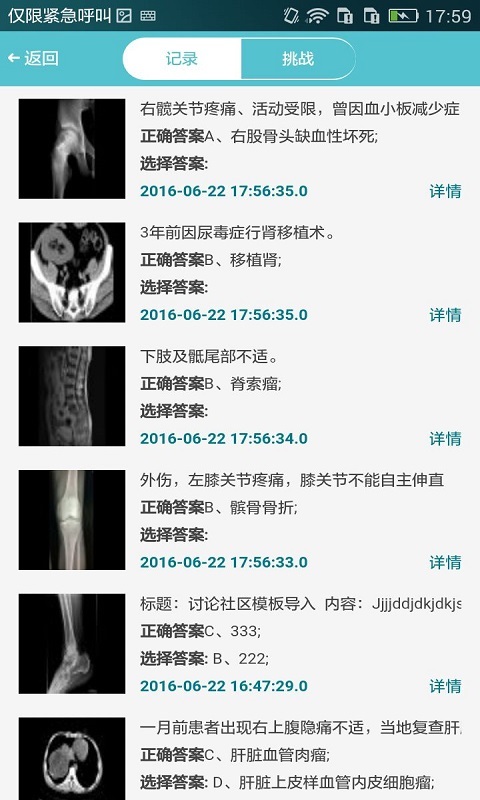 1、病例欄將原病例變成答題病例,新增經(jīng)典病例類型的病例。2、病例欄中有“題”字樣的為答題病例,區(qū)別顯示經(jīng)典病例和答題病例。