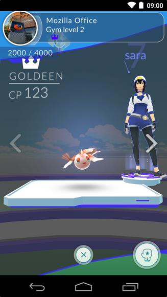 玩家可以派出他們捕捉到的寶可夢進行戰(zhàn)斗,并獲得一個道館的控制權(quán)。玩家可以在屏幕上向左右滑動來進行攻擊和閃躲。玩家擊敗防守道館的寶可夢后可降低道館威信。一旦道館的威信變?yōu)?,防守陣營就會失去該道館的控制權(quán),獲勝方則獲得該道館。當一方獲得道館控制權(quán)后,陣營內(nèi)玩家通過與其他陣營的對戰(zhàn)來提升訓練能力、增加道館威信。隨著道館的升級,防守方能派出更多的寶可夢進行防守。