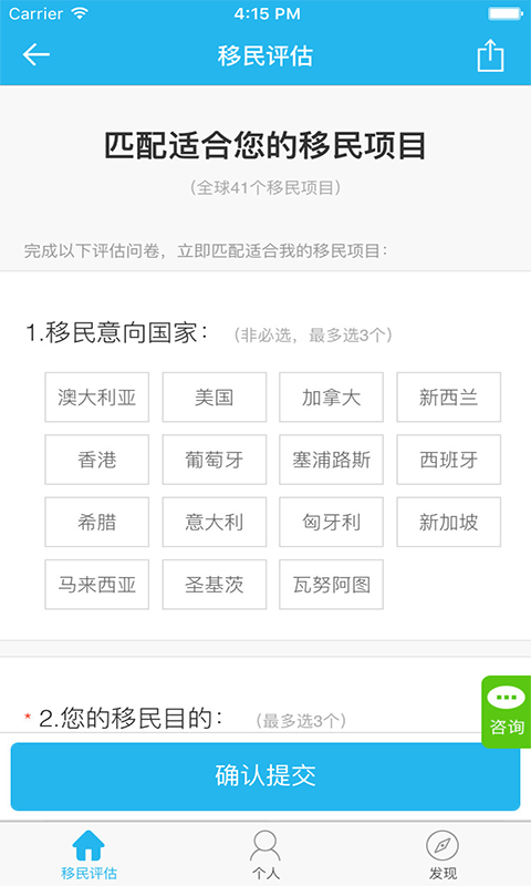 一起移民吧app是深圳市海那邊科技有限公司構(gòu)建的移民評(píng)估工具。提供各種詳盡、專業(yè)的移民咨詢,17個(gè)熱門移民國家和地區(qū)、37個(gè)移民方案、首歌華人移民交流社區(qū),讓你對(duì)移民了如指掌。