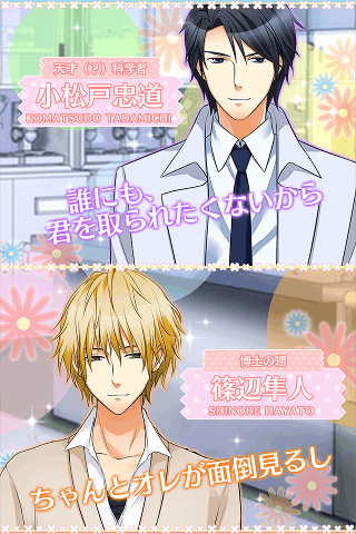 接吻的理論是一款基于戀愛養(yǎng)成的RPG角色扮演類的手機游戲,玩家可以和主角一起體驗美麗的愛情,收獲戀愛的喜悅,游戲畫面和劇情都是比較不錯的! 作講述了一個,在一個是學(xué)生時代憧憬的前輩的博士所建立的科學(xué)研究所中,作為助手的主人公因為博士發(fā)明的藥物,身體意想不到地時光倒流變年輕了,在這種情況下開始的科學(xué)題材戀愛故事。 變回了年輕時候的自己的主人公為了隱藏身份,你不得不寄宿到博士的外甥的高中生的公寓中。 同住一處的男子高中生還有老師們都對主人公抱有興趣的樣子,最終主人公到底能不能恢復(fù)到原本的身體!?
