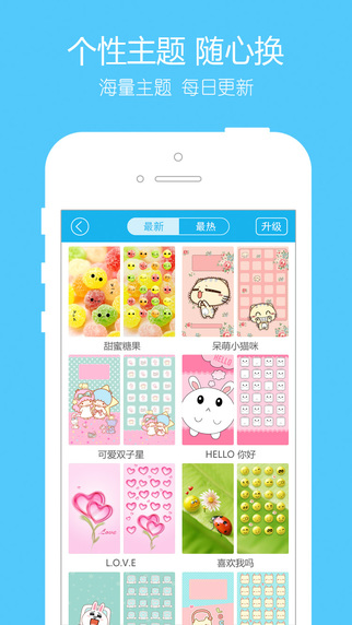 主題控app一網(wǎng)打盡各種清新,可愛,酷炫,唯美,情侶,卡通,節(jié)日,日歷壁紙,,讓你的手機(jī)與眾不同。不僅可以下載6plus的主題,還可以DIY你的專屬主題哦,背景,圖標(biāo),書架,裝飾隨心DIY。