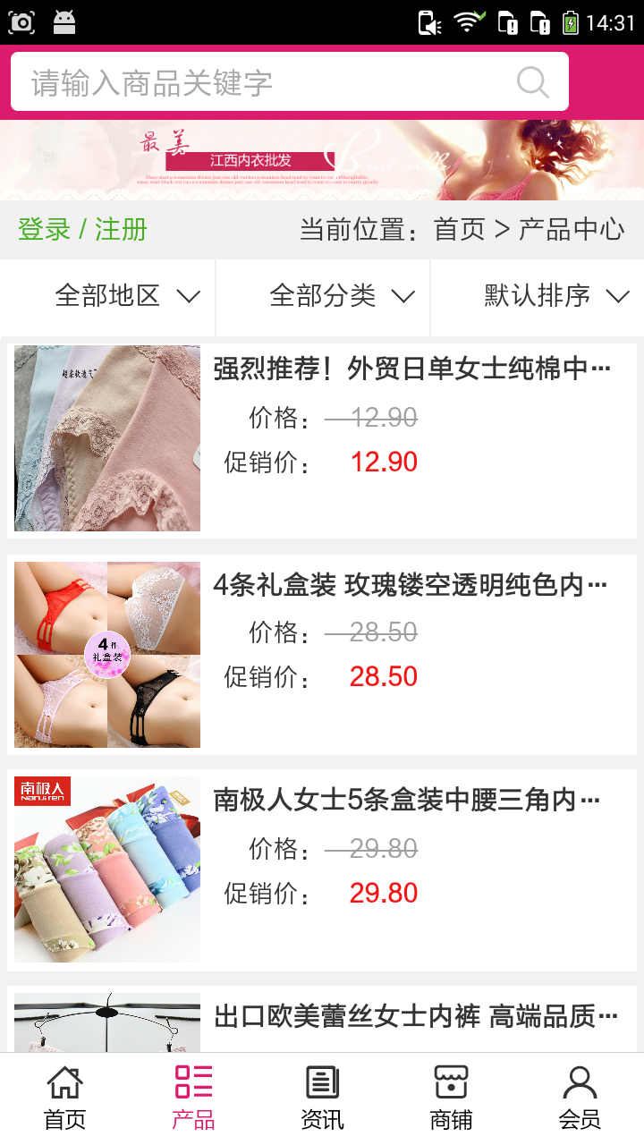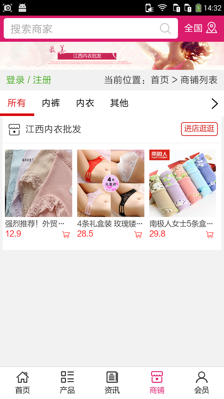 江西內(nèi)衣批發(fā)app不僅具備購(gòu)物、查詢訂單、搜索商品、行業(yè)資訊和產(chǎn)品評(píng)價(jià)等常用功能,而且還實(shí)現(xiàn)了手機(jī)版特有的會(huì)員注冊(cè)登錄、廣告位、招商開店等功能。目標(biāo)是整合當(dāng)?shù)仄放粕?、生產(chǎn)商、經(jīng)銷商,為商家和消費(fèi)者之間提供一站式解決案。歡迎下載使用!