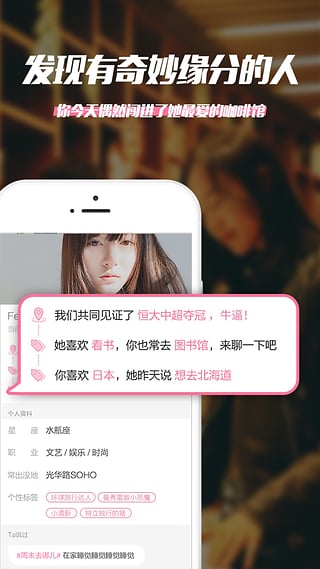 優(yōu)先推薦給你有共同軌跡,愛(ài)好的人,結(jié)交更多奇妙關(guān)聯(lián)的人。