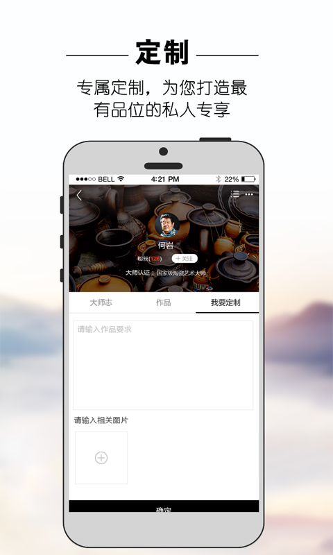“陶瓷大師”app由中國陶瓷官網(wǎng)基于海量資源傾力打造,是國內(nèi)一款專注于陶瓷大師及作品的移動電子商務(wù)平臺,平臺以國家、省、市級陶瓷藝術(shù)大師、工藝美術(shù)大師以及收藏愛好者為服務(wù)對象,為其提供宣傳展示、鑒賞互動、私人定制、在線交易等電子商務(wù)服務(wù),打造“互聯(lián)網(wǎng)+陶瓷大師”的專屬平臺。【軟件特點】
