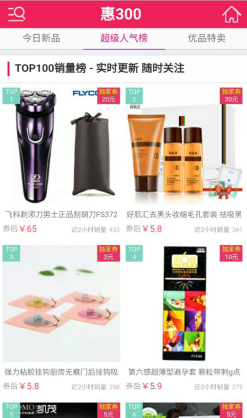 惠300是一款專門提供淘寶天貓商家內(nèi)部優(yōu)惠卷的應(yīng)用平臺,優(yōu)惠券折扣直播第一站!每天更新千款,純?nèi)斯ずY選驗貨,限時限量特賣,全場1折包郵! 本應(yīng)用非常小幾乎不占用空間,安裝后就可使用,無需注冊賬號!惠300只是提供優(yōu)惠卷,做優(yōu)惠產(chǎn)品的推薦,交易還是在淘寶網(wǎng)進行,安全、方便、快捷! 聲明:本應(yīng)用無任何廣告、捆綁、純綠色應(yīng)用