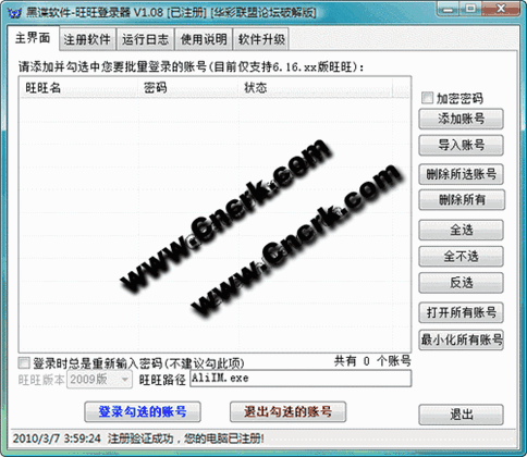 本軟件用來(lái)批量登錄旺旺,方便管理您的旺旺賬號(hào),目前只支持2009版旺旺.
