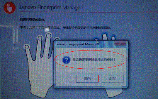 4、注冊(cè)指紋完成后,在重啟至登錄Windows登錄界面時(shí),可以直接刷指紋進(jìn)入系統(tǒng)。附:刪除指紋方法打開(kāi)指紋程序,點(diǎn)擊下方半圓圖標(biāo);點(diǎn)擊下圖中的關(guān)閉按鈕即可刪除指紋;返回頁(yè)首