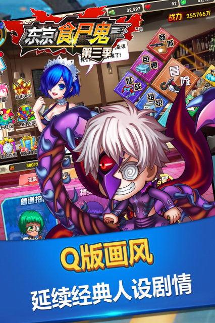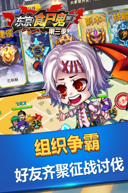 東京食尸鬼第三季手游是一款A(yù)RPG手游,游戲有著最Q版的畫風(fēng),最經(jīng)典的劇情,強(qiáng)大合擊技能,四大陣營即將激情對(duì)戰(zhàn),還不快來加入!東京食尸鬼粉絲的福利到了!2016年最好玩的手游《東京食尸鬼第三季》正式開測(cè)啦!小伙伴們看完《東京食尸鬼》,是否覺得蕩氣回腸,意猶未盡呢?想知道后面的故事嗎?那就來玩《東京食尸鬼第三季》手游吧!