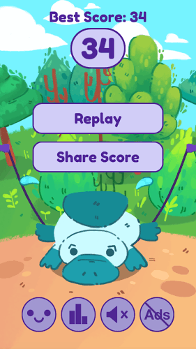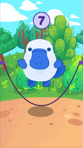 寵物跳繩是一款休閑益智類(lèi)游戲,玩家在游戲中要控制一只萌萌的鴨嘴獸進(jìn)行跳繩,點(diǎn)擊屏幕即可讓鴨嘴獸跳起來(lái),隨著跳繩成功的次數(shù)越來(lái)越多,難度也會(huì)越來(lái)越大,非??简?yàn)玩家的反應(yīng)力。