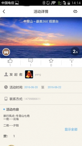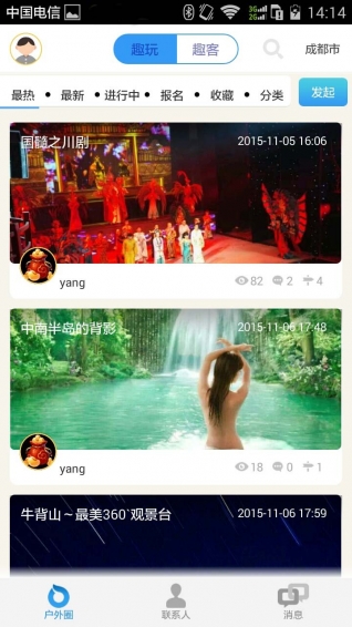 趣戶外是一個(gè)集成活動發(fā)布互動、線上線下融合通訊、趣玩趣客大數(shù)據(jù)的戶外通信社交平臺。從活動前的發(fā)布召集、活動中的線上線下融合通訊和互動、活動后的集群內(nèi)容分享和評論,形成以戶外活動為主題、以平臺內(nèi)容為互動、以戶外通訊為工具的戶外生態(tài)平臺,讓戶外更有趣。【更新日志】