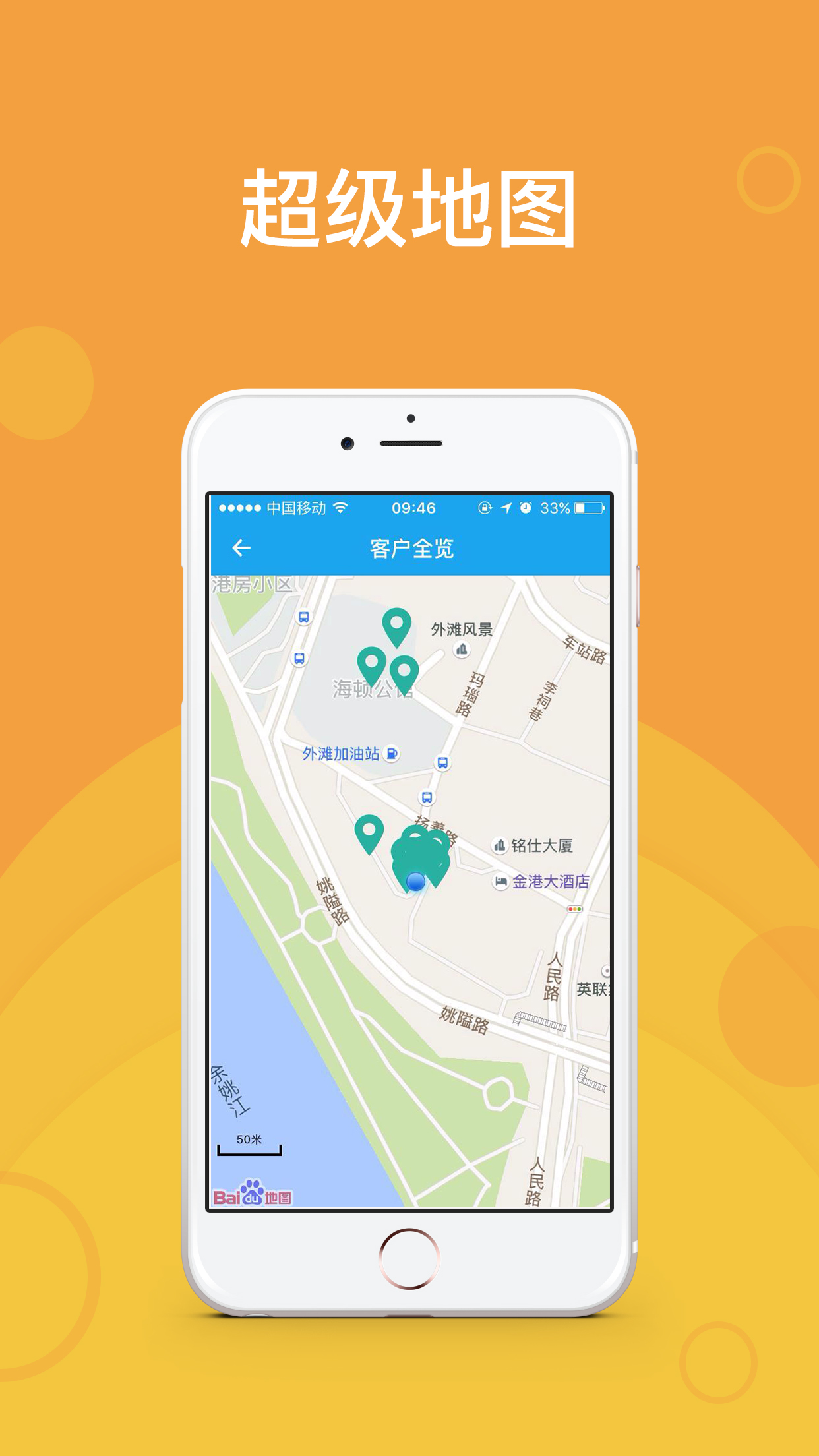 【超級(jí)地圖】外勤人員可隨時(shí)查看當(dāng)前位置周邊的目標(biāo)客戶位置和信息;