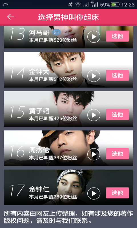 小鮮肉鬧鐘app是一款鬧鐘應(yīng)用軟件,在這里你可以選擇你喜歡小鮮肉叫你起床,自定義鬧鐘鈴聲,讓一天好心情從早上鬧鐘開始。【軟件特點(diǎn)】