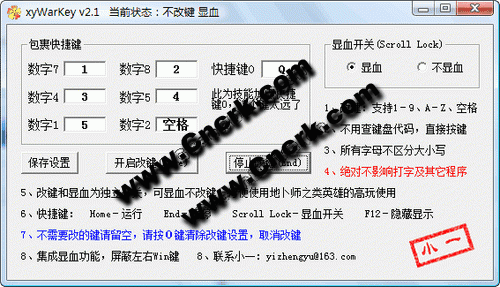xyWarKey V2.1 簡體中文綠色免費版 顯血:顯示雙方血條(顯血開關(guān):Scroll Lock鍵)