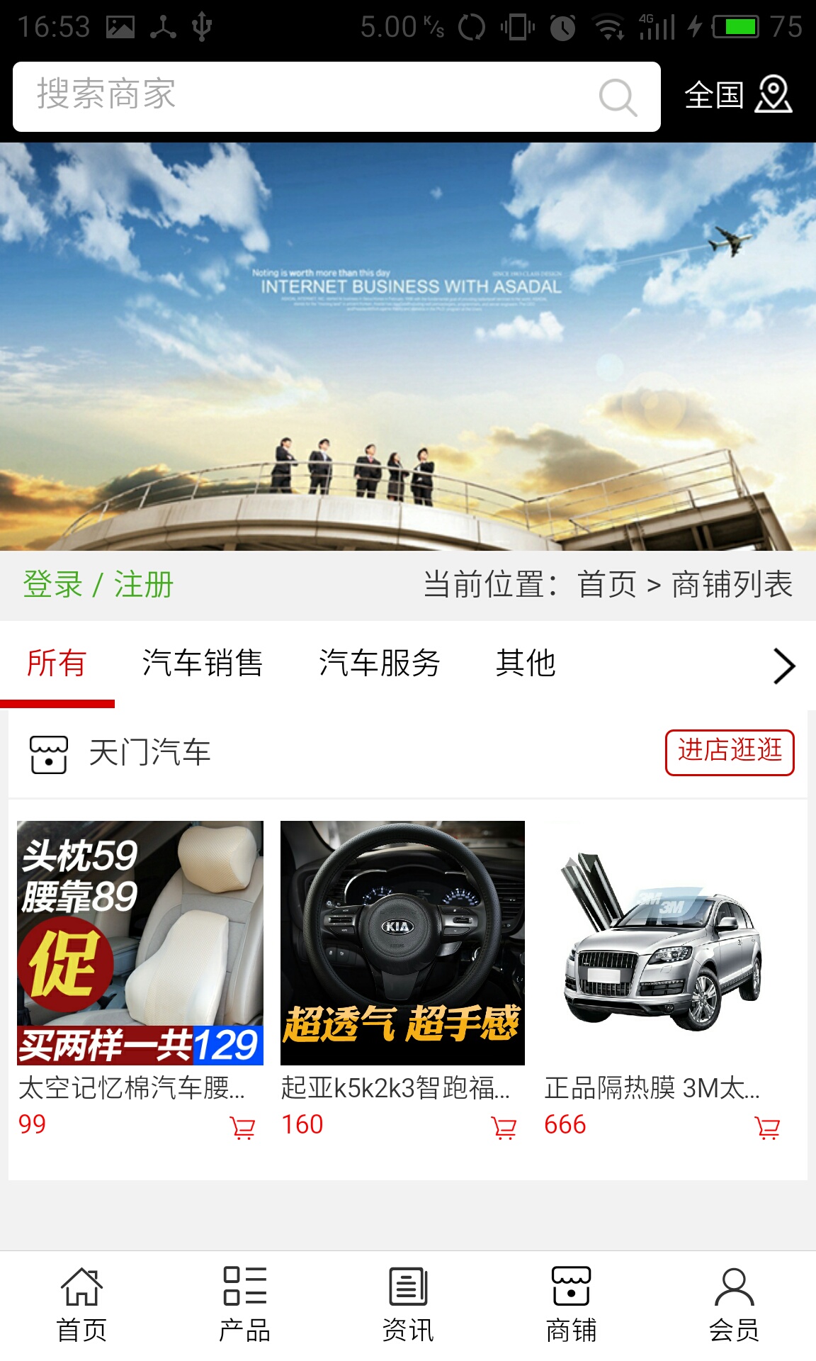 1、天門汽車app不僅具備購(gòu)物、查詢訂單、搜索商品、行業(yè)資訊和產(chǎn)品評(píng)價(jià)等常用功能,而且還實(shí)現(xiàn)了手機(jī)版特有的會(huì)員注冊(cè)登錄、廣告位、招商開店等功能。2、目標(biāo)是整合當(dāng)?shù)仄放粕?、生產(chǎn)商、經(jīng)銷商,為商家和消費(fèi)者之間提供一站式解決案。