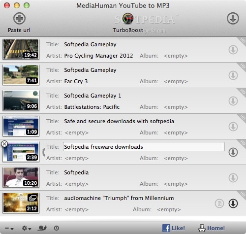 YouTube的MP3是一個不言自明的Mac OS X應(yīng)用程序?qū)iT設(shè)計來幫助你批量下載許多歌曲從各種視頻分享網(wǎng)站,節(jié)省直接在您的iTunes播放列表。YouTube下載MP3的承諾可獲得最高的質(zhì)量,同時,允許你將抓住音頻MP3,M4A或OGG格式的音頻文件。將顯著增加的速度,你會添加URL到你的下載列表是剪貼板跟蹤功能。YouTube MP3自動監(jiān)視你的Mac的剪貼板中的內(nèi)容,幫助您添加視頻的馬蹄聲沒有從您的Web瀏覽器切換。