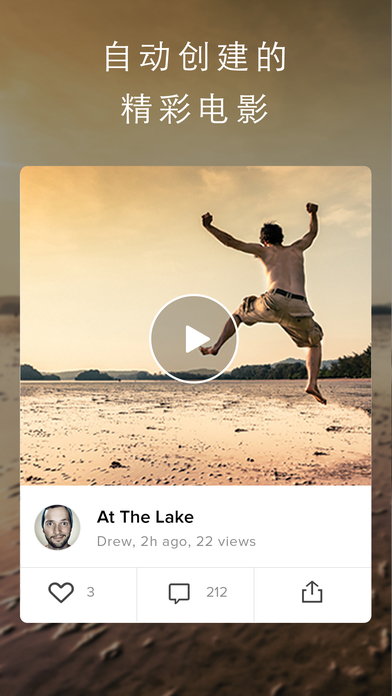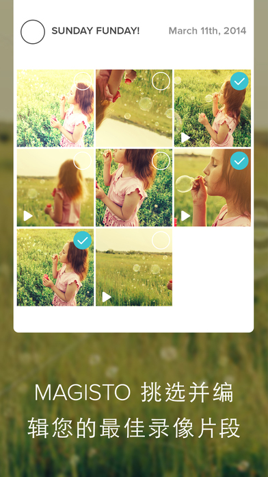 Magisto讓你的手機變成世界上最智能的攝影機——在幾分鐘內就可以拍攝好視屏并且自動編輯視頻。用戶使用iPhone來錄制視頻或者從Camera Roll應用選擇視頻,選擇音頻添加標題,剩下的事情就交給Magisto來完成。