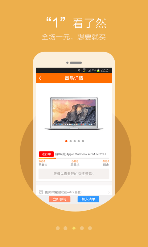 1、每件商品參考市場價平分成相應“等份”,每份1金幣,1份對應1個奪寶碼。