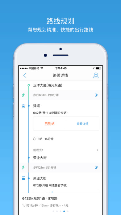①數(shù)據(jù)精準(zhǔn):輸入公交線路OR公交站點名稱,準(zhǔn)確告知您欲乘坐的任一公交車當(dāng)前位置、發(fā)車時間以及到站信息。②功能全面:周邊線路地圖導(dǎo)航,附近公交距離多遠(yuǎn)、還有幾站到一目了然;輸入起點和終點,智能篩選出多種換乘方案,提供詳細(xì)的可行性線路和公交站牌信息。