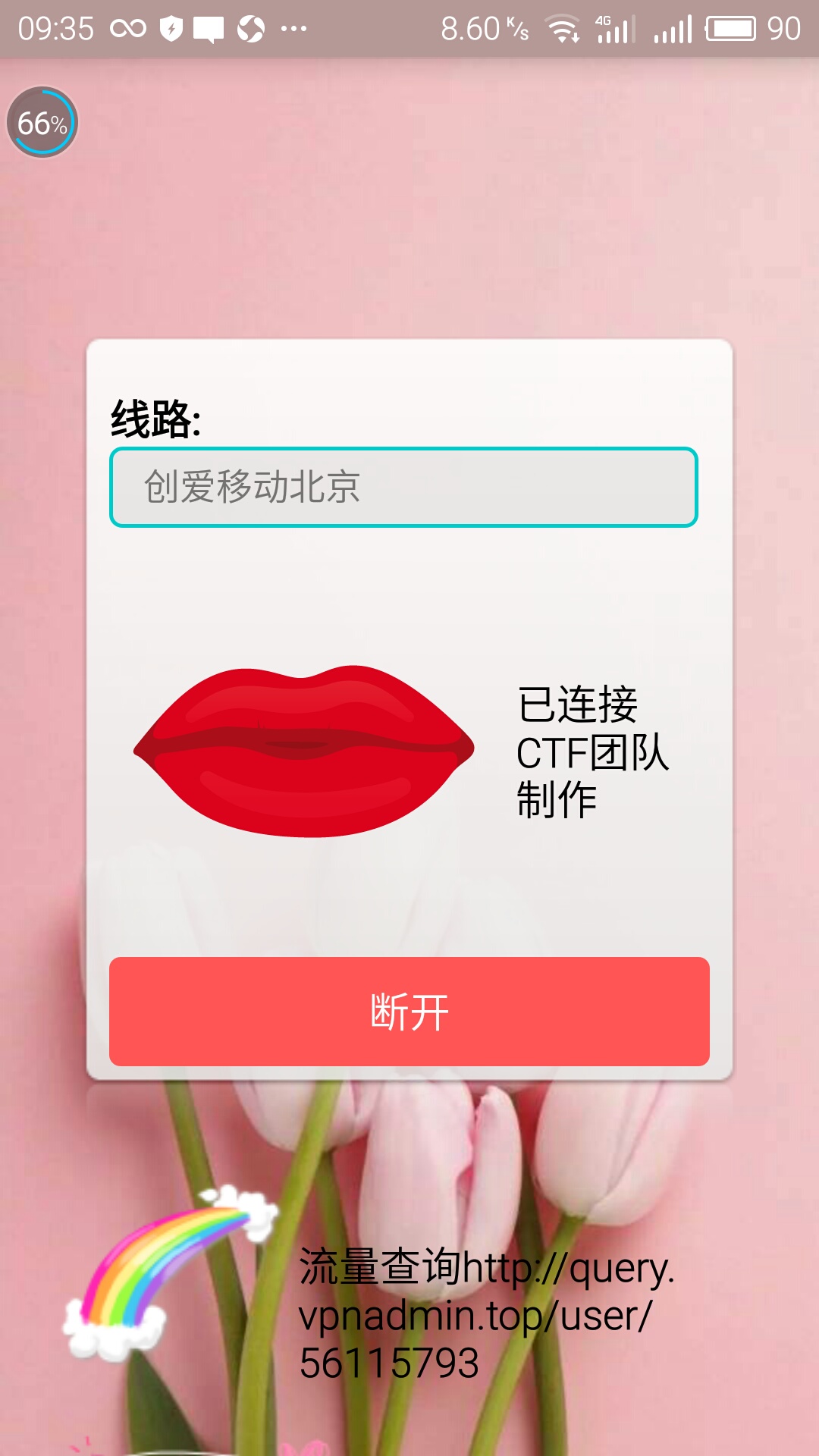 CTF團(tuán)隊(duì)為你免流?。。∠螺dCTF創(chuàng)愛版app,然后去軟件打入賬號(hào)密碼,線路優(yōu)先選自己所在的省,然后鏈接成功,后臺(tái)運(yùn)行,不要清理后臺(tái),最好鎖住后臺(tái)加入白名單,然后去查查10086的流量,再用一下軟件,是否扣本機(jī)流量,不扣就可以使用了!