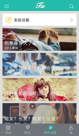 她她app是一個(gè)交友平臺(tái),你可以用她她app來認(rèn)識(shí)周邊的朋友,也能在這里參與各種話題討論,還可能認(rèn)識(shí)心儀的ta,在周末的時(shí)候和小伙伴一起周邊游也是個(gè)不錯(cuò)的選擇。